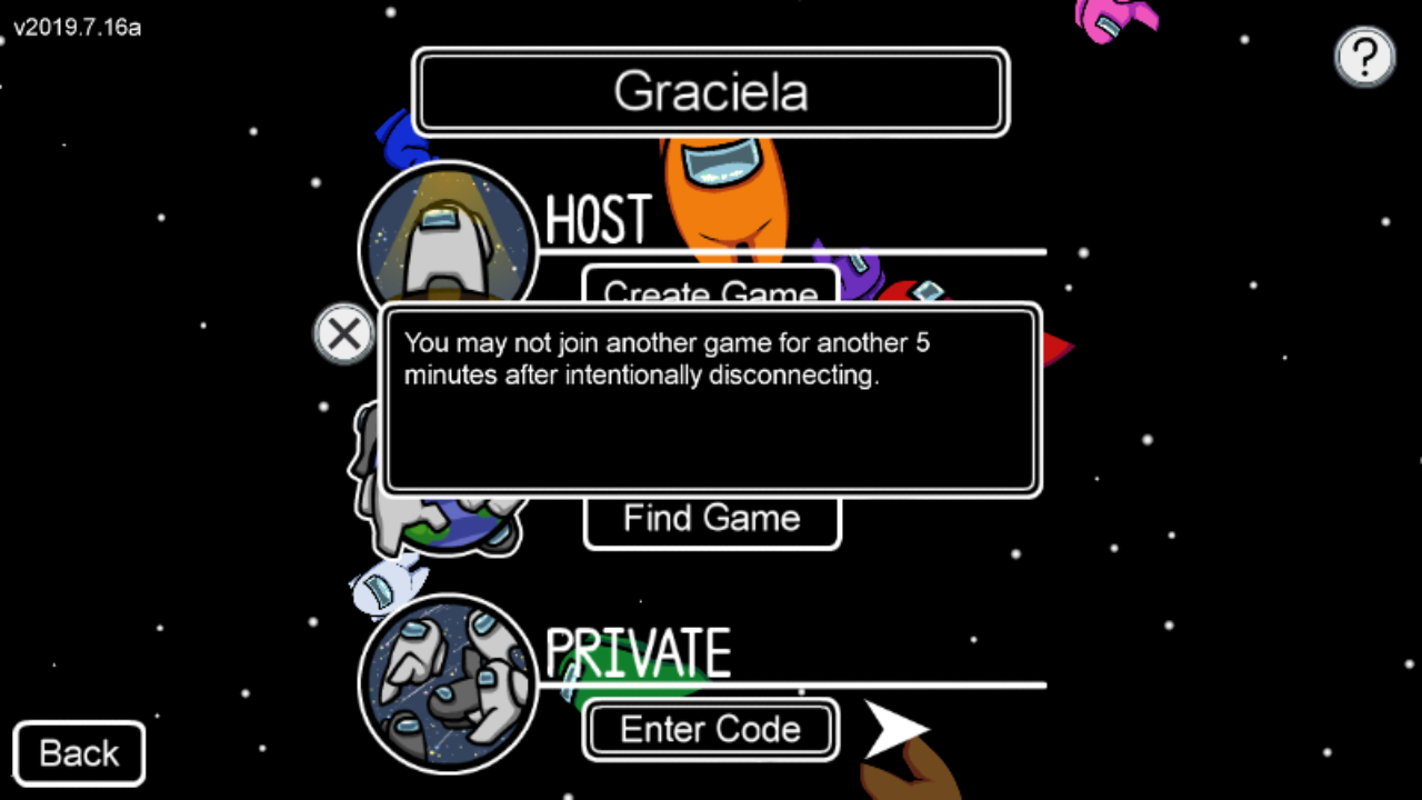 I like this game a lot but I can’t play cause every time I try to join a game it says “you’ve been disconnected from the server” and I can’t create a game because it says “the among us servers are overloaded”
